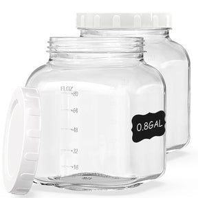 2 Pcs 1 Gallon Square Fermentation Jars with 2 Screw Lids and Scale Mark