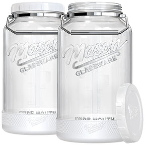 - Patented wide-mouth Mason jar design: BPA-free glass, secure-seal lid, durable stainless steel handle, upgraded silicone sleeve, and vintage Mason styling—all for smarter storage. 1.5-gallon glass jar with lid: Say goodbye to messy spills and food waste.