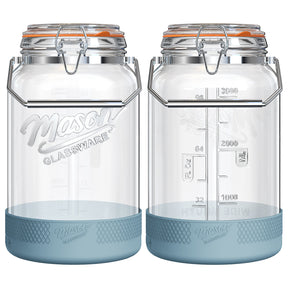 2 Pc 1 Gallon Glass Mason Jar with Blue Silicone Anti-slip Cover & Airtight Glass Lid, Steel Removable Handle