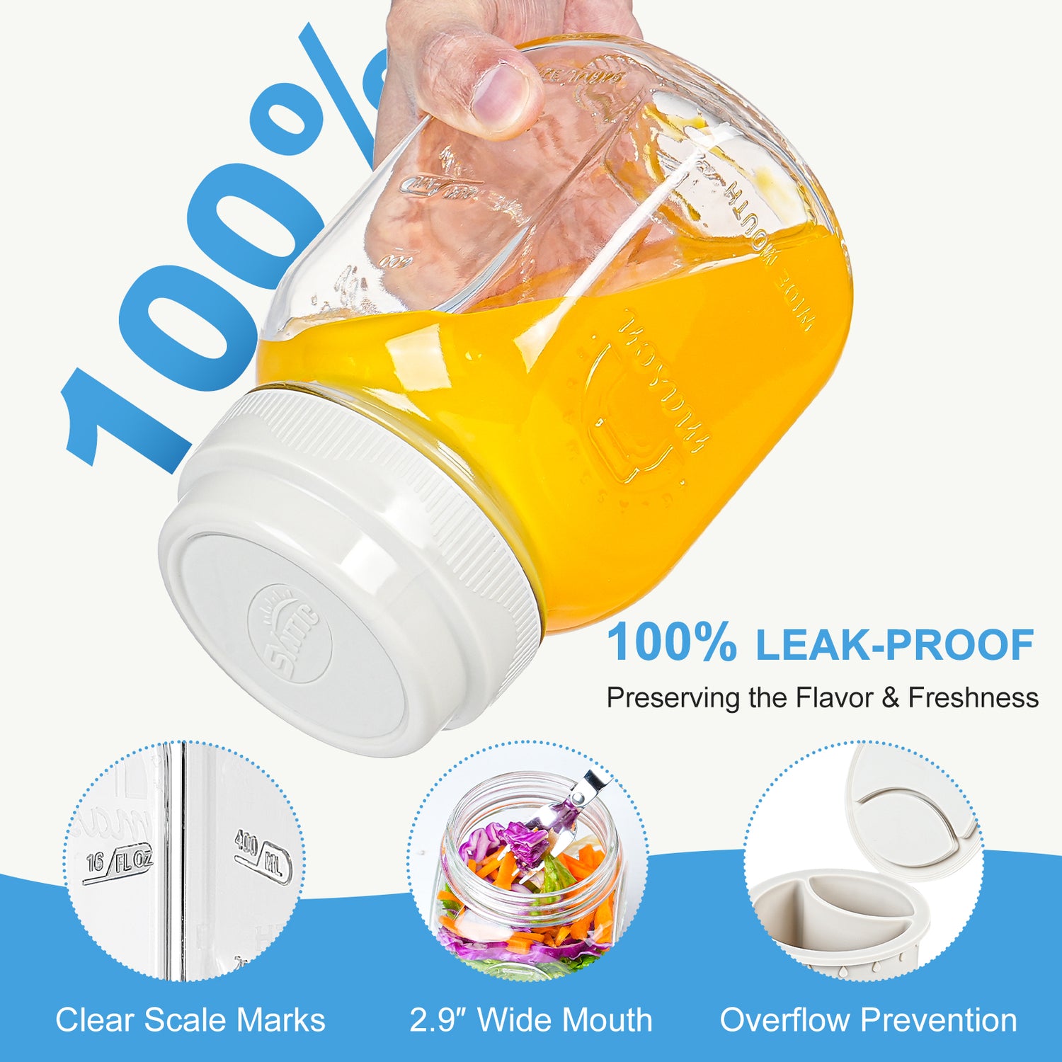• One jar equals one meal: Each 1-quart salad jar is designed to hold a truly satisfying meal—not just a snack. Easily layer vegetables, protein, grains, and toppings into a jar for a balanced lunch to enjoy at work or on the go.