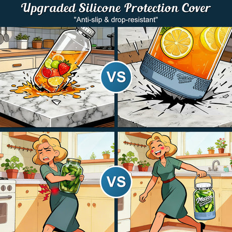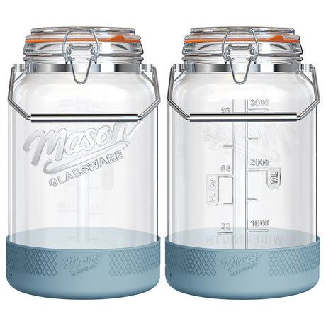 2 Pc 1 Gallon Glass Mason Jar with Silicone Anti-slip Cover & Airtight Lid, Steel Removable Handle