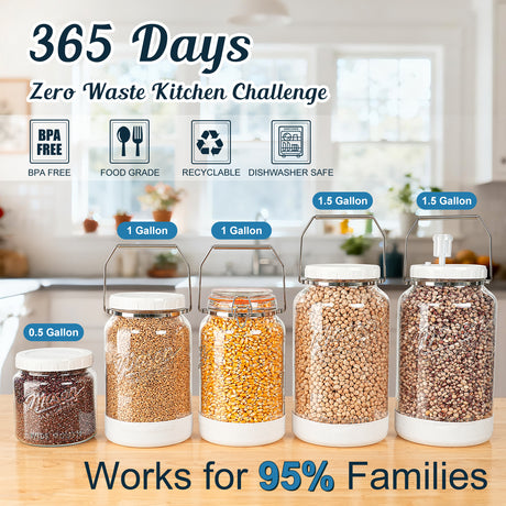 2 Pc 0.5 Gallon Mason Jar with Airtight Glass Lid