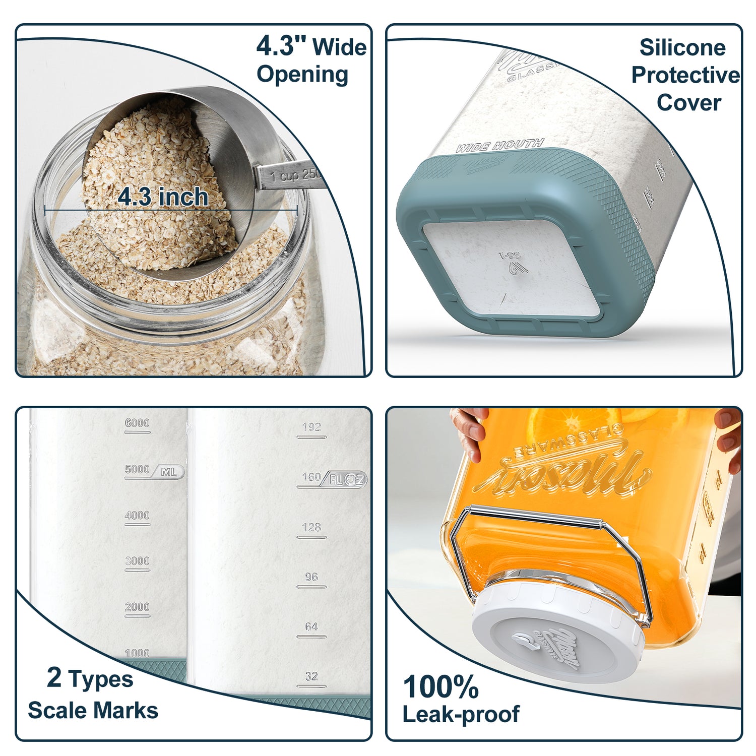 2 Pcs 0.8 Gallon Square Wide Mouth Glass Jars with Airtight Lids